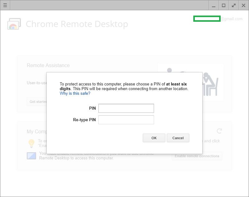 Enter the desired PIN in the Chrome Remote Desktop app. This PIN will be needed when connecting to your PC from a different location.