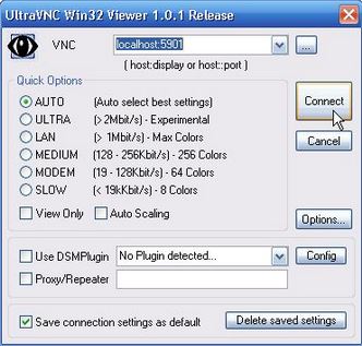 From the other computer, launch the UltraVNC viewer tool and enter the necessary info. Click the "Connect" button.