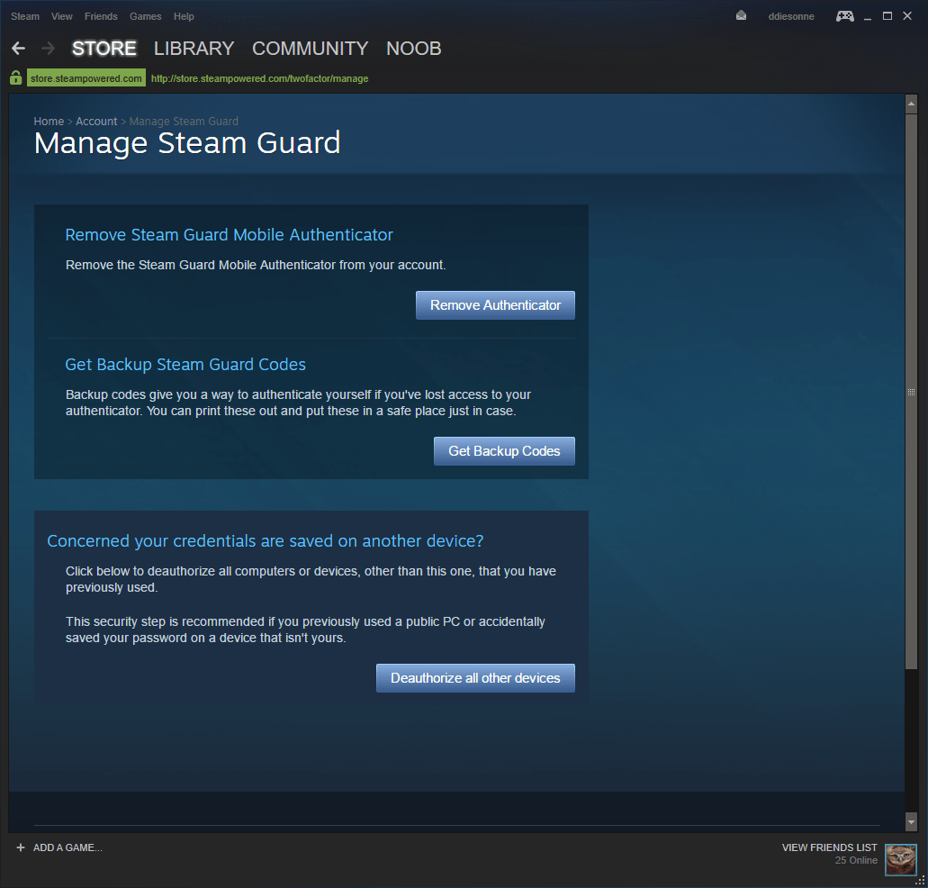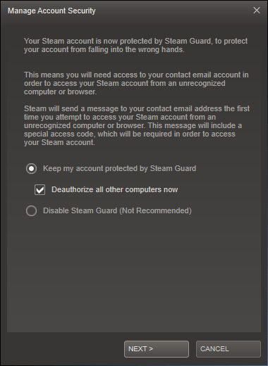 A window that will allow you to manage your now-activated Steam Guard feature, for your account, will open.